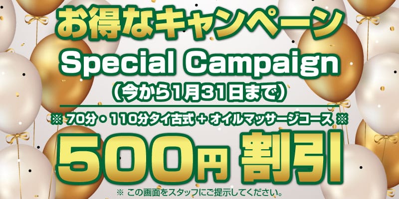 お得なキャンペーン ハッピー タイ古式マッサージ 笠間市大田店 | 笠間市大田 宍戸 タイマッサージ